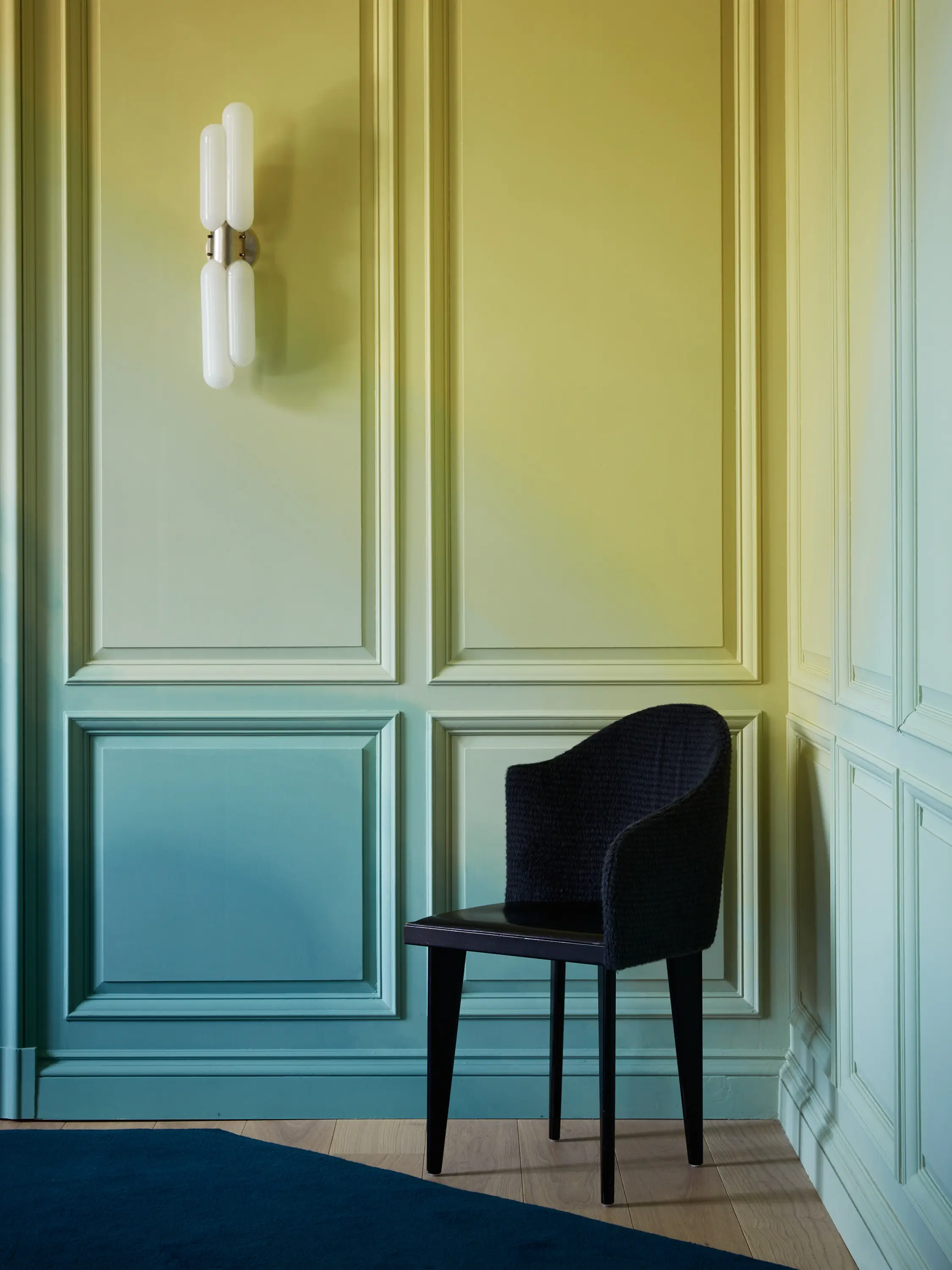 In the Apollonia Dining Room, the artworks serve as poetic contours, waxing and waning with a kind of experiential spiritualism as one revolves around the space. Their synchronicity with the room’s furnishings and other design elements is unorthodox, almost coincidentally psychic and perhaps even somewhat inexplicable. Yet the coalescence is palpable, invigorating the space and its guests with a generative energy.